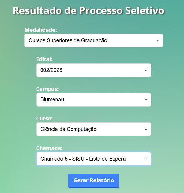 - Acessar https://candidato.ifc.edu.br/public/report/selection-result;